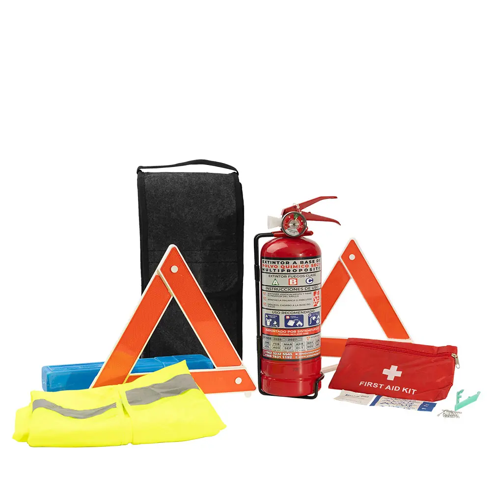 Kit para Auto – Incluye: Bolso con 01 extintor PQS 1 kg, Botiquín, Chaleco reflector y Triángulo.